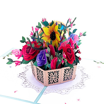 Thiệp Chúc Mừng Giỏ Hoa 3D Bán Sỉ Thiết Kế Theo Yêu Cầu Kèm Phong Bì